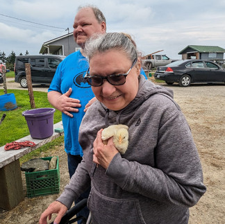 Today at Yarmouth Life Skills we went to visit Krista's farm. We got to handle many animals that we hadn’t had the chance to handle before. We met goats, fed chickens, and held little chickadees. We visited the pigs, though due to some rules at the farm we didn't get to pet them, for safety reasons. We saw and fed the horses, and even got to brush out the rabbits.
